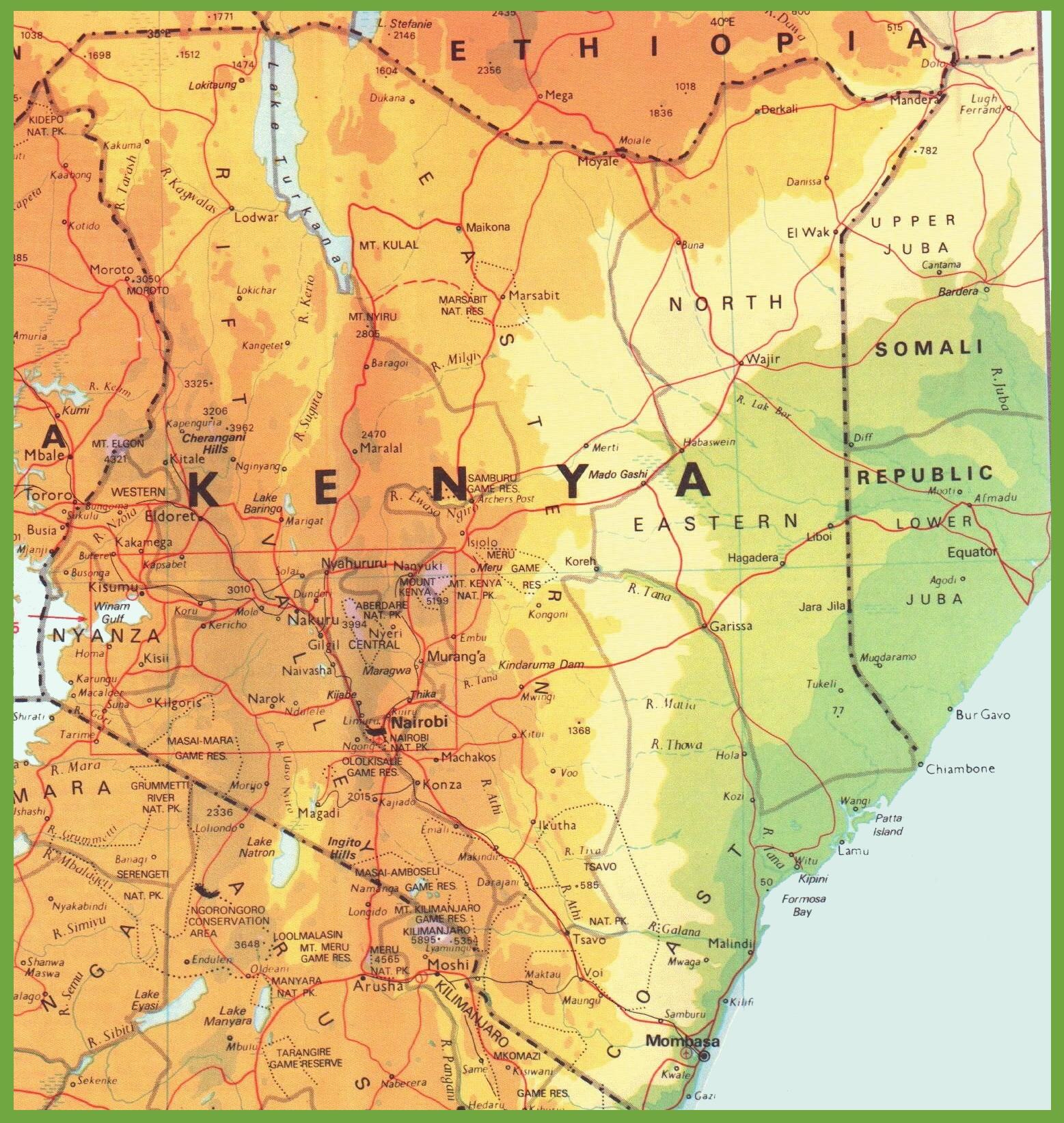 Map of Kenya showing towns. Kenyan map with towns (Eastern Africa - Africa) to print. Kenyan map with towns (Eastern Africa - Africa) to download.
