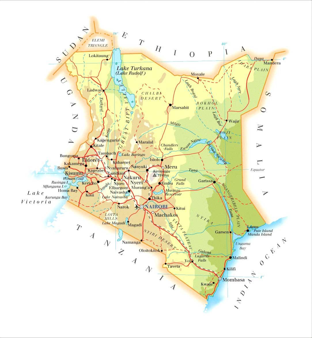 Physical map of Kenya